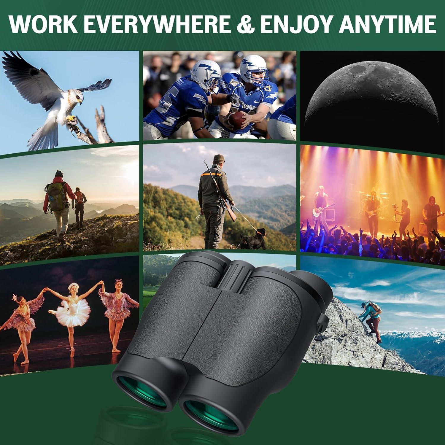 【Travel Binoculars for Birdwatchers and Hunters】Our hunting binoculars are made of high-quality environmentally friendly materials, with daily waterproof and anti-fog function, rubber coated surface, durable and portable for outdoor use, even for harsh environments, while the lightweight ergonomic grip and easy focus function make long time observation easy and comfortable.